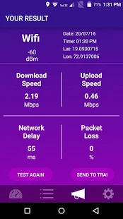 This application allows you to measure your data speed experience and sends the results to TRAI. The application captures and sends coverage, data speed and other network information along with device and location of the tests. The app does not send any personal user information. All results are reported anonymously. While this application gives TRAI details of your data experience, sending a report to TRAI does not constitute a complaint. In case of poor experience, users are requested to register a complaint with their network service providers.